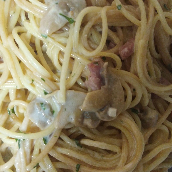 Em frigideira alourar o alho e azeite, acrescentar o bacon e deixe tostar.