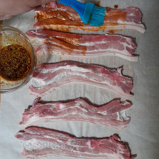 Colocar as entremeadas num pirex e pincelar de ambos os lados