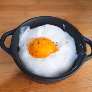 Colocar o queijo em cima e por fim as claras em castelo, reservando a gema para depois