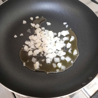 Numa frigideira colocar o azeite, a cebola picada e alourar