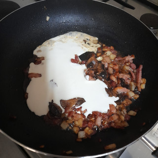 Adicionar os cogumelos, as natas, envolver tudo e deixar apurar por 3 mins