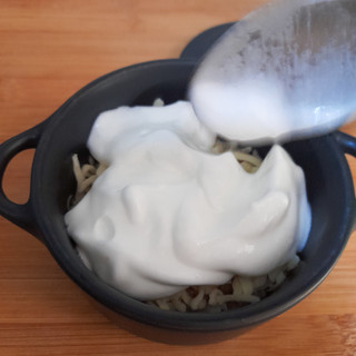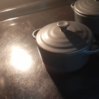 Dividir o preparado em 2 cocottes ( tambem pode colocar em tigelas ou pequenas formas para suflê )
